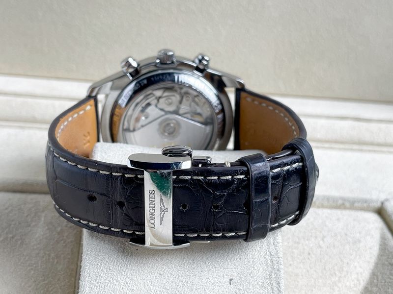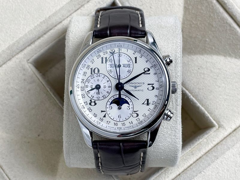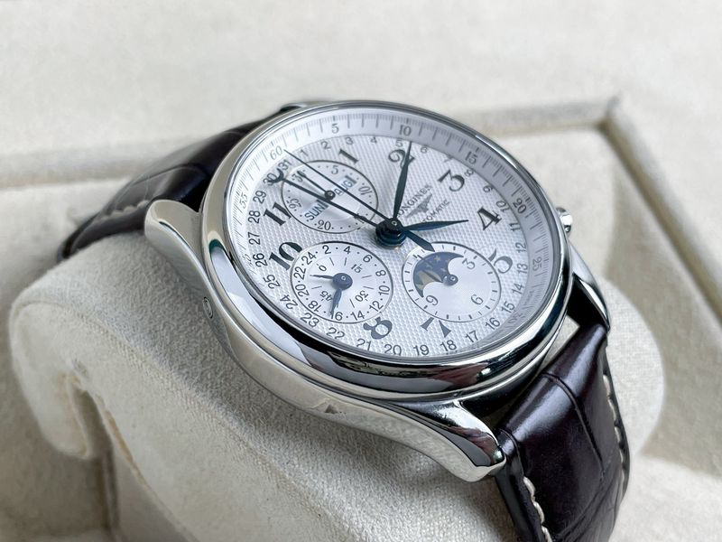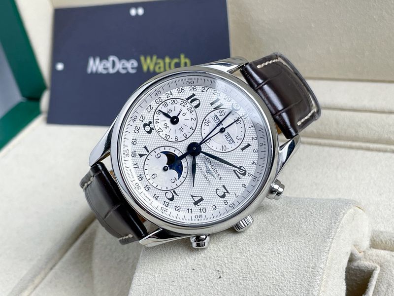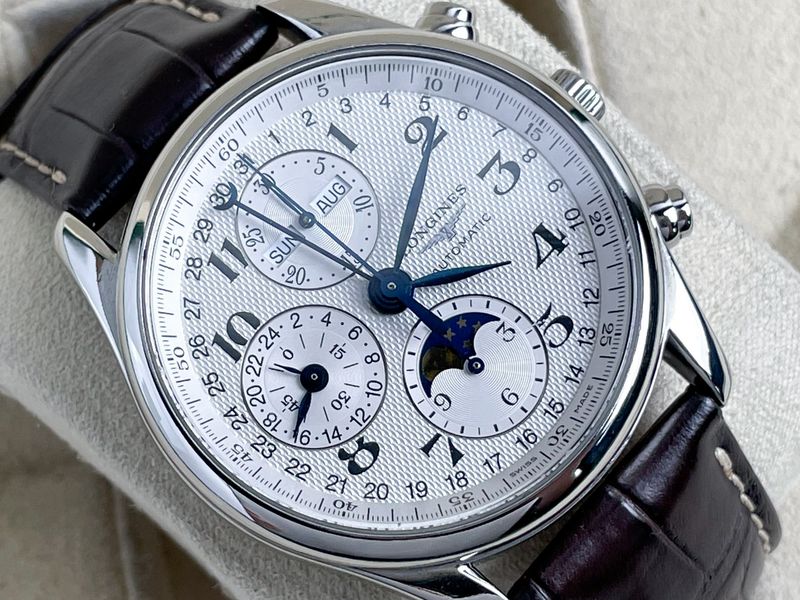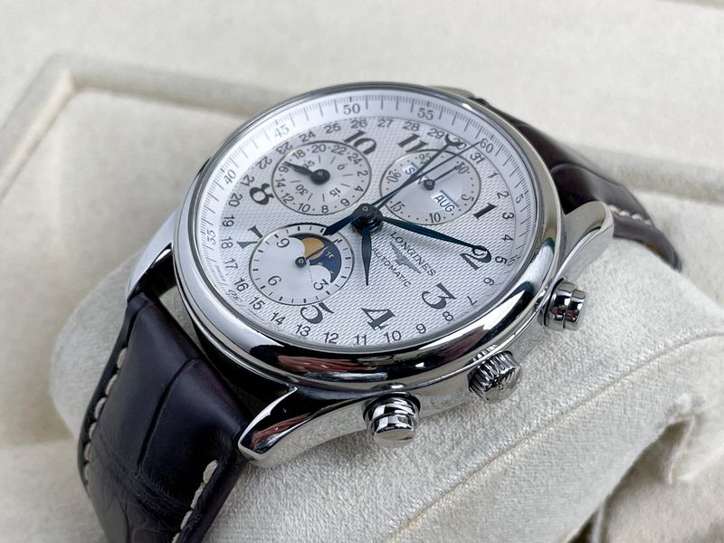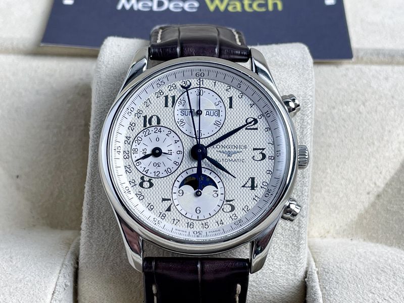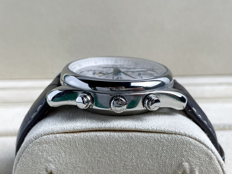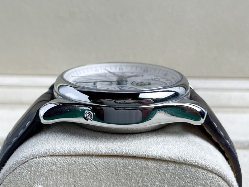 รุ่นท็อปสุด ฟังชั่นอย่างครบ ราคาคุ้มค่า ป้าย 1xx,xxx มาในตัวเรือนขนาด 40 หน้าปัดสีขาวแกะลาย ฟังก์ชั่นคลาสสิกอย่าง Triple Calendar บอกวัน วันที่ เดือน ทั้งมี Moonphase และยังสามารถจับเวลาได้ด้วยระบบ Chronograph จับคู่มากับเครื่อง Automatic หลังเปลือย สายหนังแท้ของแบรนด์เบิกใหม่ มาพร้อมกล่องใบครับ