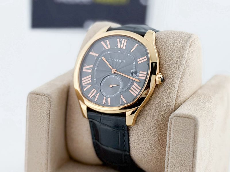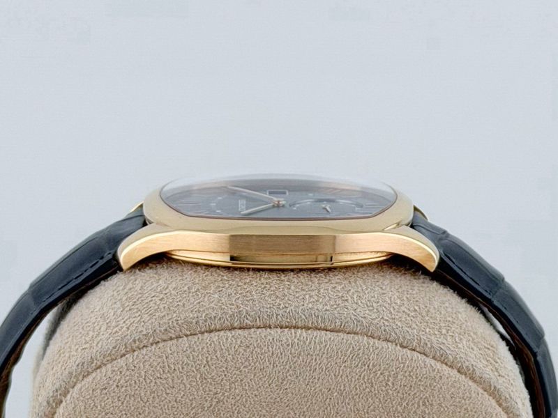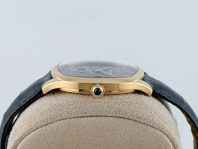 หรูหรา มีระดับ รูปทรงดีไซน์เป็นเอกลักษณ์ของรุ่น ตัวเรือนทำจากทองคำ 18K Rose Gold ขนาด 42 หลักโรมันสุดคลาสสิก หน้าปัดสีเทาแกะลาย Guilloche เพิ่มมิติได้อย่างงดงาม เข็มวินาทีแบบแยกวง Subdial มีช่องวันที่ กลไกเครื่อง Automatic สายหนังแท้เดิม บัคเคิ้ลบานพับ 18K ประหยัดจากออกช้อปไปหลายแสนครับ