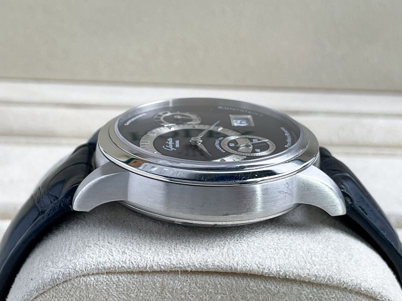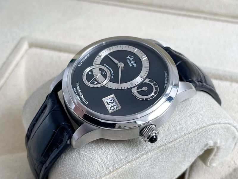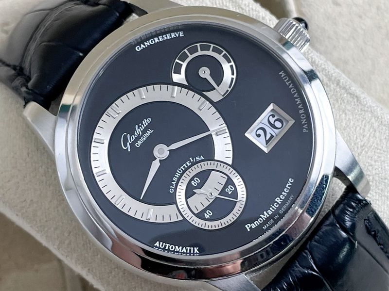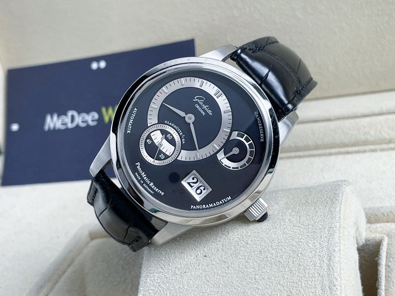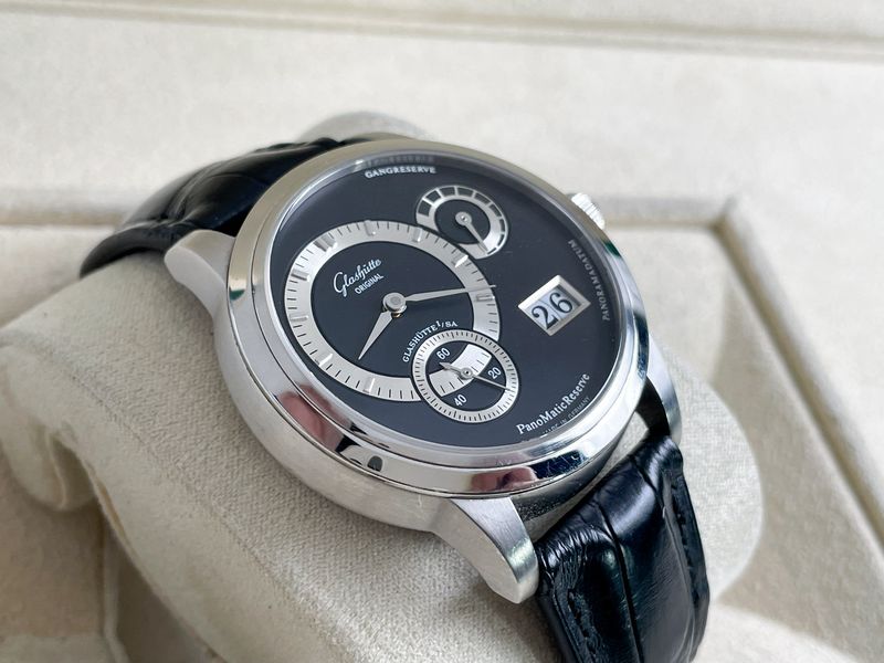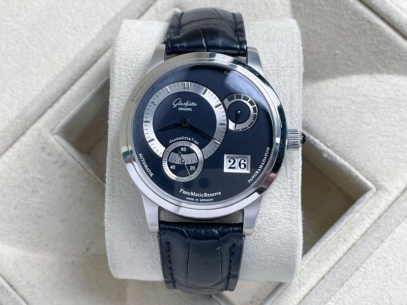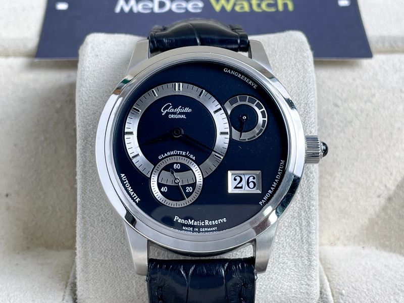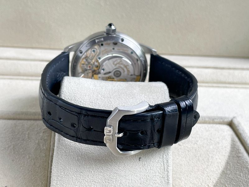 งานอย่างสวย วัสดุอย่างหรู มาในตัวเรือน Platinum ขนาด 38 หน้าปัดดำ จัดวางหน้าปัดสไตล์ Off Center ได้อย่างลงตัว วันที่แบบ Big Date วงแสดง Power Reserve เครื่องออโต้ หลังเปลือย ขัดแต่งมางดงามมากครับ
