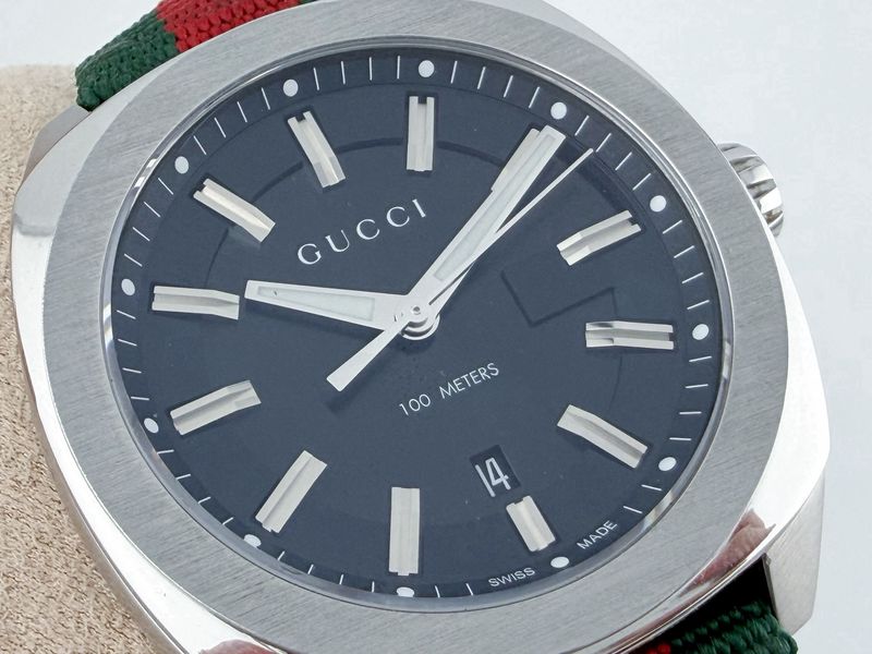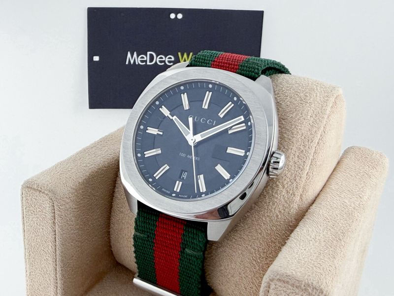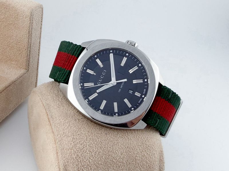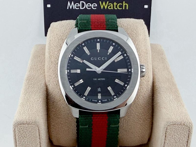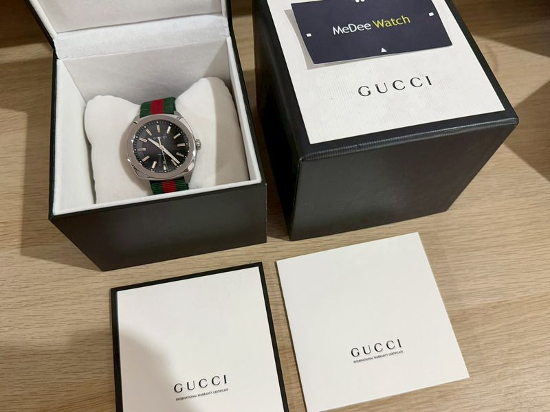 แบรนด์ Luxury รุ่นยอดฮิต หน้าปัดดำขนาด 41 มีช่องแสดงวันที่ สายผ้า Fabric เขียวแดงสภาพดี Signature ของแบรนด์ สภาพสวยๆ กล่องใบครบป้าย 5x,xxx แล้วครับ ประหยัดไปเยอะ