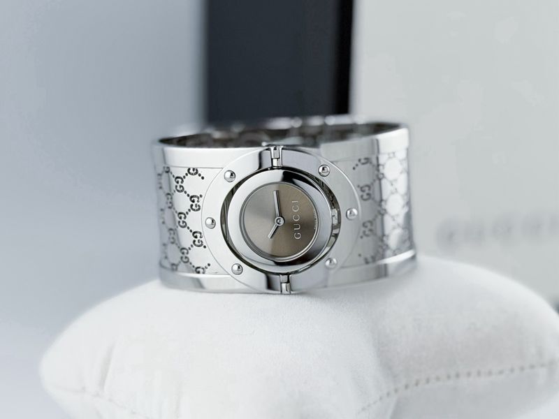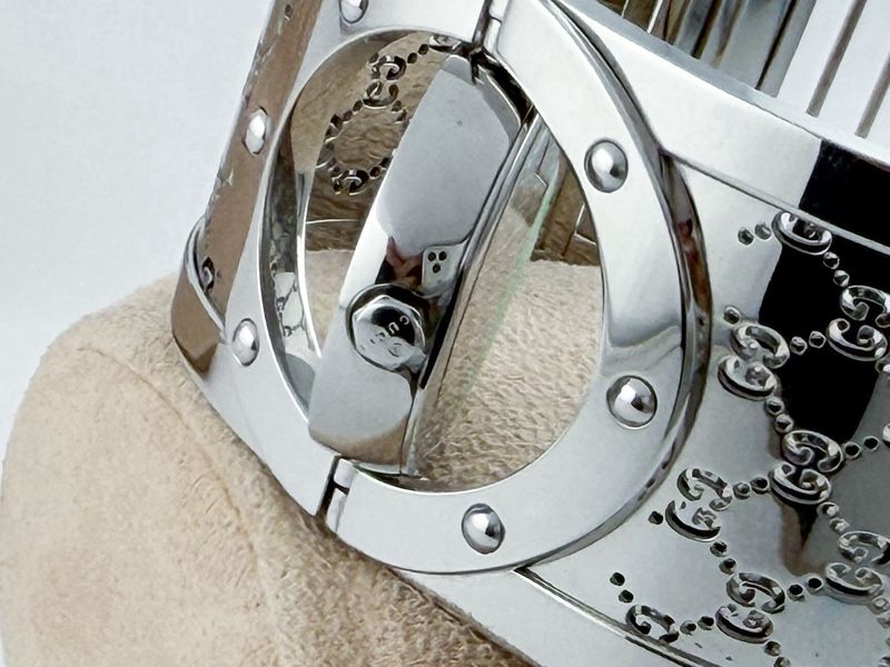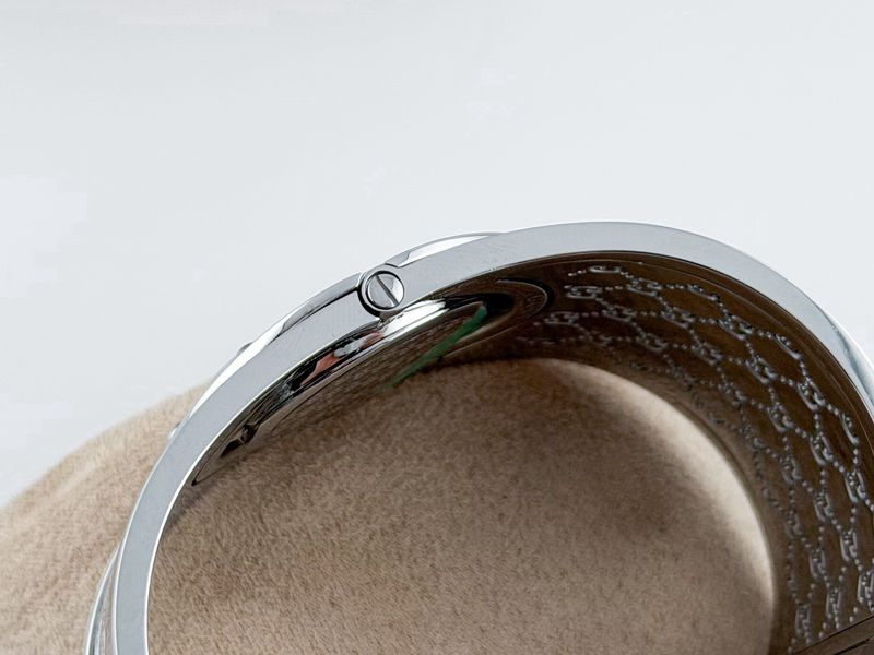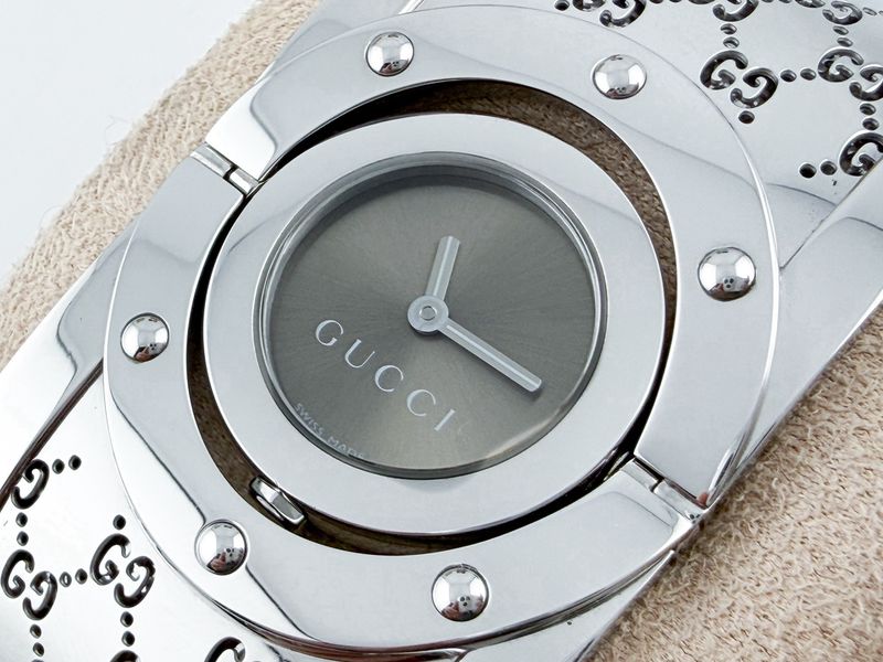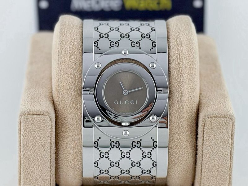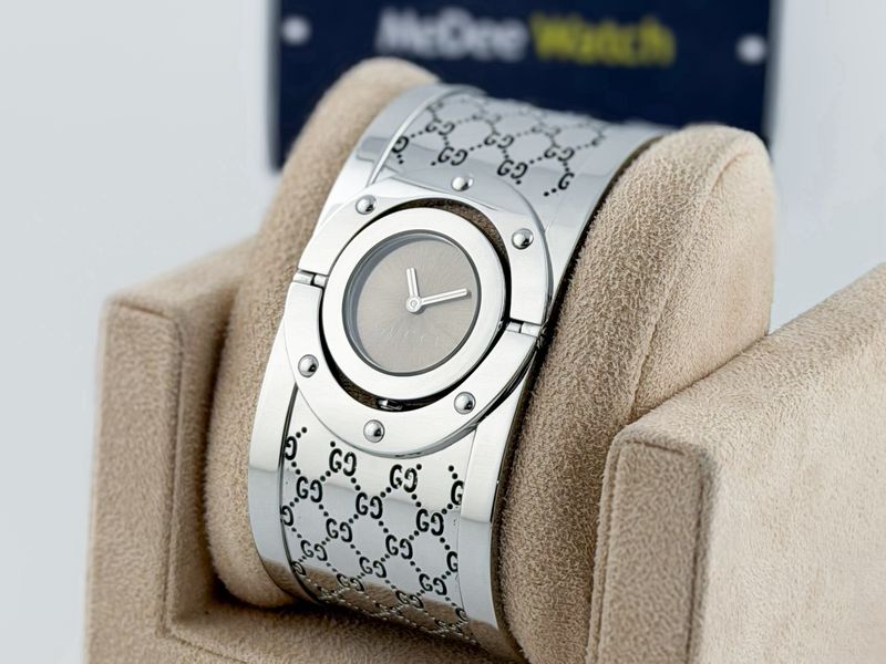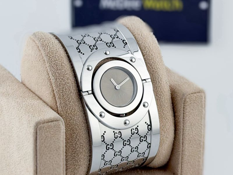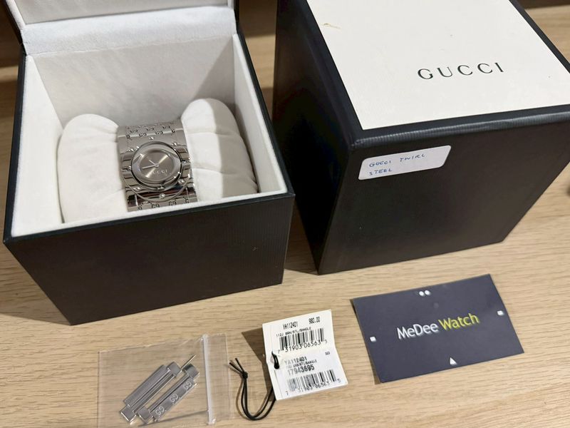 ของขวัญวาเลนไทน์จากแบรนด์หรู ใส่ได้ทั้งเป็นนาฬิกา และกำไลข้อมือ ตัวเรือนสามารถหมุนกลับด้านได้ ขนาด 33 กลไกเครื่อง Quartz เดินดี ดูแลง่าย สายเหล็กฉลุลาย GG Signature สติ๊กเกอร์ฝาหลังยังอยู่ มาพร้อมกล่อง ข้อสำรอง และป้ายแท็กตรงรุ่นครับ