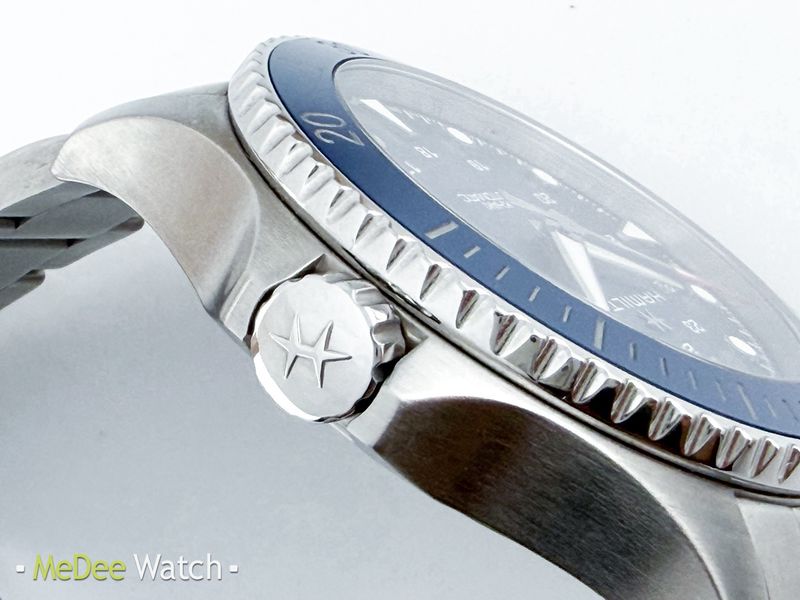 นาฬิกาดำน้ำทรงสปอร์ตพิมพ์นิยม กันน้ำลึก 300 เมตร ดีไซน์สวยลงตัว ขอบ Bezel ทำจาก Ceramic สีน้ำเงินเข้ม กันรอยขีดข่วนได้อย่างดี ตัวเรือนขนาด 43 หน้าปัดพ้นทราย สี Gradient Blue ไล่เฉดเพิ่มมิติให้กับหน้าปัด พรายน้ำเด่นๆ กลไกเครื่องออโตเมติก สำรองพลังงาน 80 ชั่วโมง สภาพสวยกริ๊บ มาพร้อมกล่องใบครบ ป้ายกว่า 38,xxx ประหยัดไปหลายหมื่นครับ
