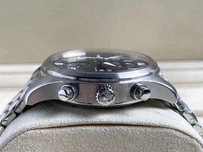 รุ่นฮิตตลอดกาล กับนาฬิกาสายนักบิน ที่ได้ฟังก์ชั่นครบๆ ตัวเรือนขนาด 42 หน้าปัดดำ แสดงวันที่แบบ Day Date ฟังก์ชั่นจับเวลา Chronograph เครื่องออโต้ กล่องใบครบๆครับ