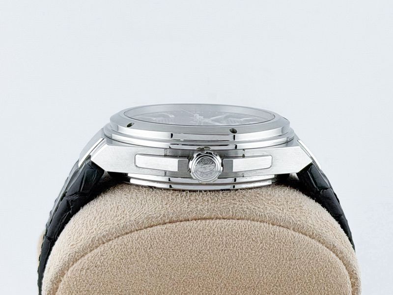 ความแกร่งขนาด Big Size พร้อมกลไก 7 วัน ที่ยอดเยี่ยมที่สุดของแบรนด์ ได้ดีไซน์จาก DNA ระดับตำนานของ Gérald Genta หน้าปัดสีดำลายแกะลาย สวยมีมิติ ตัวเรือนขนาด 45.5 แข็งแกร่งเต็มข้อ กลไกเครื่องออโตเมติก ขอส่งต่อนาฬิกาที่แสดงถึงวิศวกรรมขั้นสูงเรือนนี้ พร้อมกล่องใบครบๆ ครับ