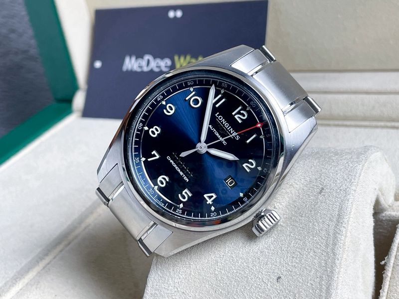 รุ่นใหม่ชนช้อป หน้าปัดสีน้ำเงิน Sunray ตัวเรือนไซส์กำลังสวยขนาด 40 สาย Stainless Steel บานพับคู่ เครื่องออโต้ สำรองพลังงาน 72 ชั่วโมง เดินดีพร้อมใช้งานได้ยาวๆ ครับ