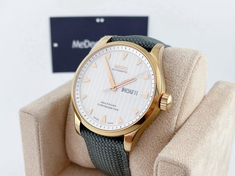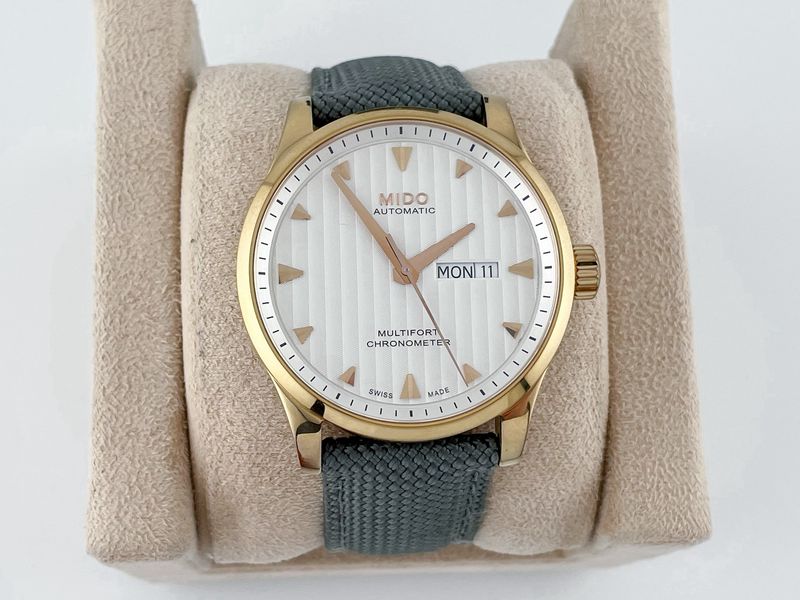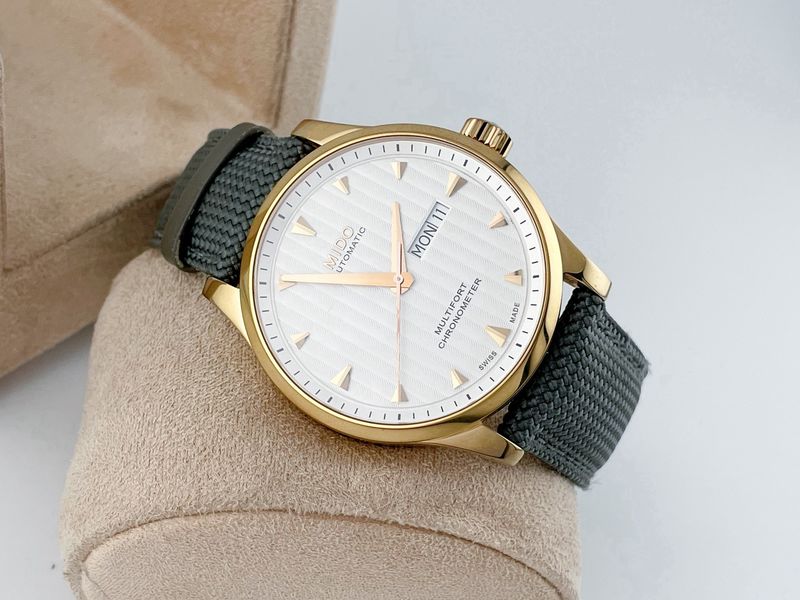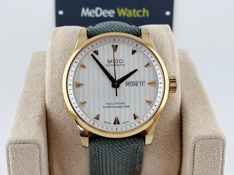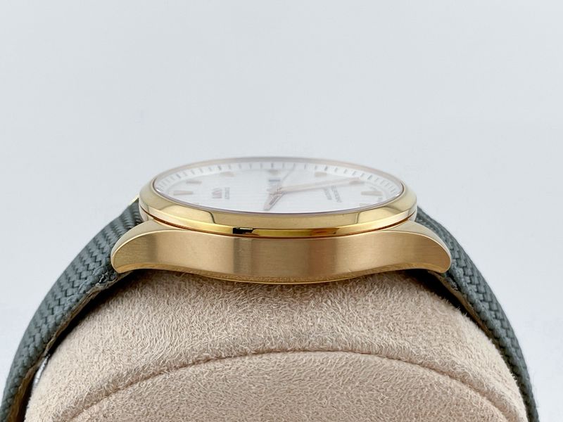 รุ่นนิยม ใส่ง่าย ได้ตัวเรือนทองหรูๆ มาในขนาด 42 หน้าปัดสีขาวแกะลาย หลักชั่วโมงและชุดเข็มสีทอง แสดงวันที่แบบ Day Date สายผ้าแท้ของแบรนด์ กล่องใบครบครับ