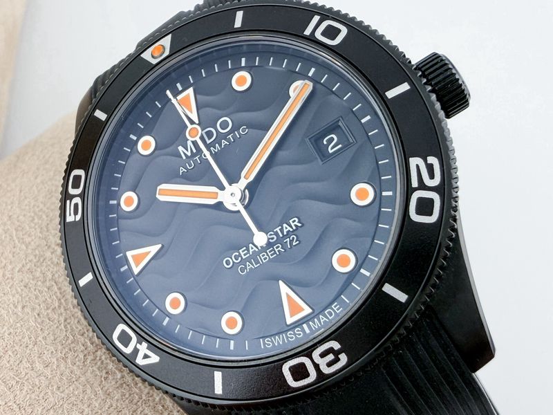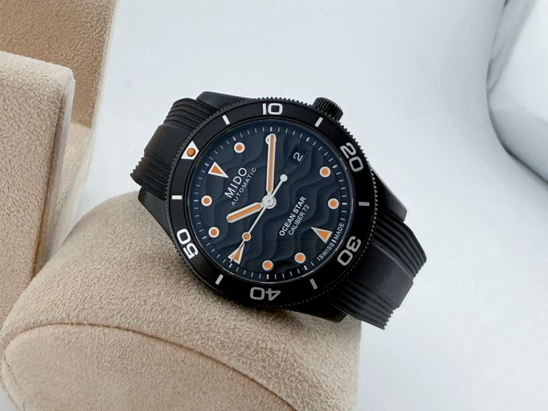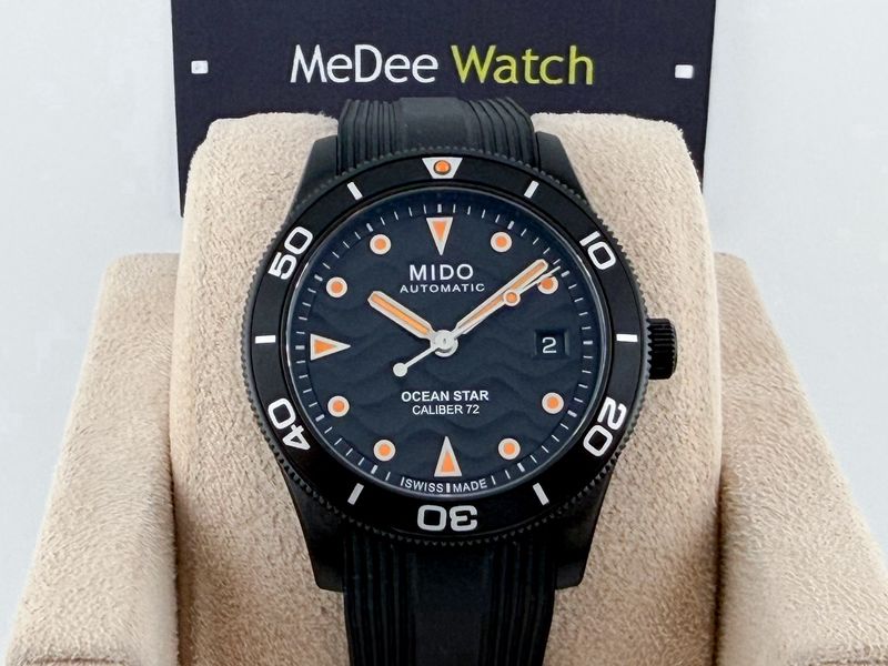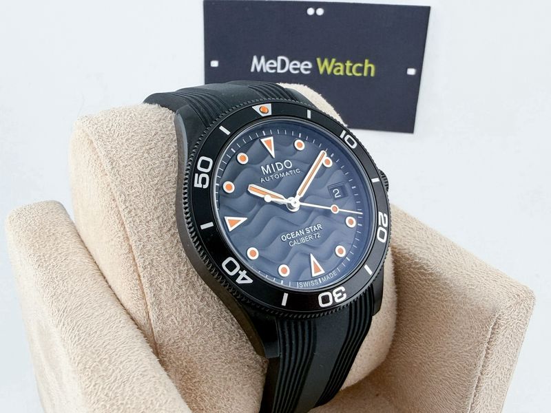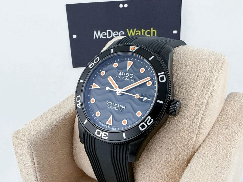 รุ่นใหม่ ชนช้อป สปอร์ตเข้ม ตัวเรือนรมดำขนาด 39 หน้าปัดสีดำนูนลายคลื่น ได้มิติสวยงามมาก จับคู่มากับสายยางดำ ขอบหมุนได้ โดดเด่นด้วยพรายน้ำ กลไกออโตเมติกรุ่นใหม่ สำรองพลังงานนานถึง 72 ชั่วโมง กล่องใบครบ ปี 2024 ครับ