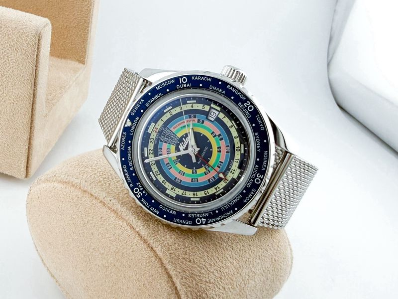 ของใหม่ NOS ไม่ผ่านการใช้งาน รุ่นพิเศษ Special Edition ตัวเรือนขนาด 40.5 ฟังก์ชั่น World time และ GMT กลไกเครื่องออโตเมติก สำรองพลังงาน 80 ชั่วโมง มาพร้อมสาย Stainless Steel แบบถัก และสายยาง กล่องใบไทยครบๆครับ ป้ายกว่า 46,xxx ครับ