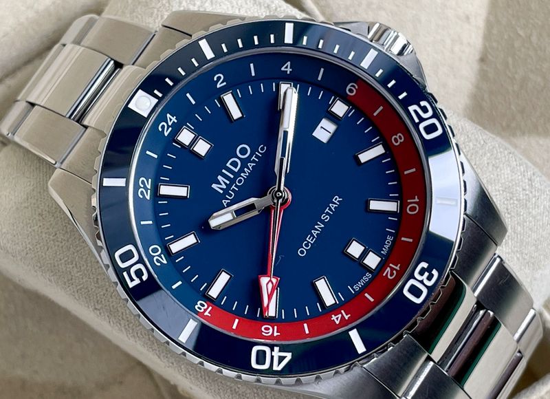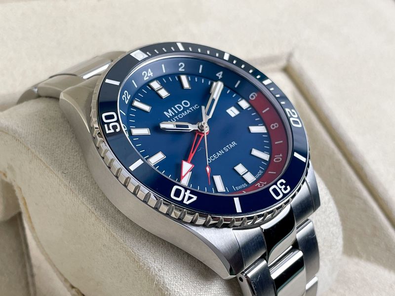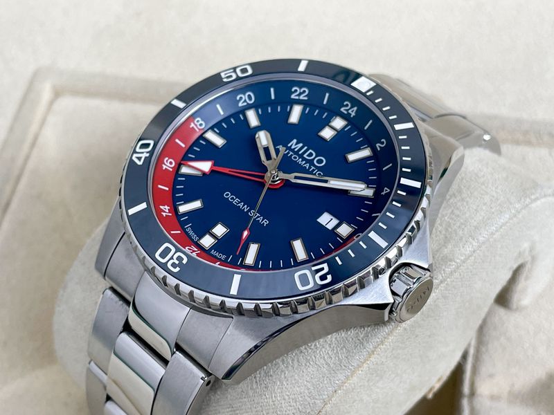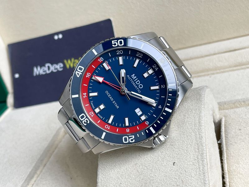 หน้าตาอย่างหล่อ สปอร์ตเต็มข้อ มาในตัวเรือนขนาด 44 หน้าปัดสีน้ำเงิน ขอบเซรามิคหมุนได้ ดีเทลขอบในสีแดง ฟังก์ชั่น GMT เครื่องออโต้ สำรองพลังงาน 80 ชั่วโมง ป้าย 5x,xxx กล่องใบไทยครบๆครับ