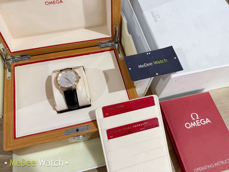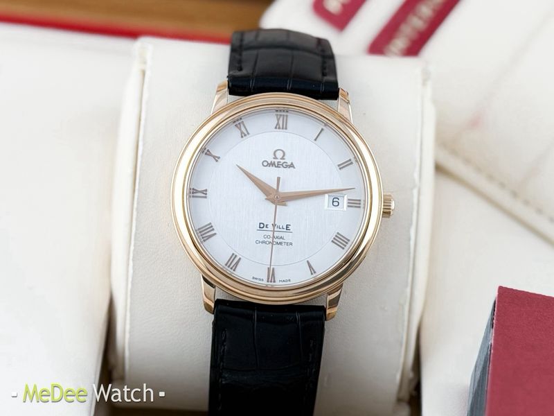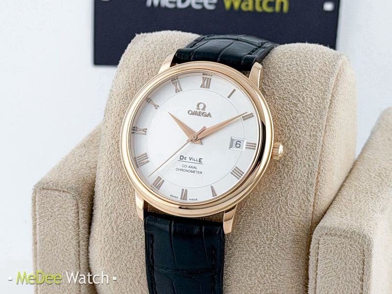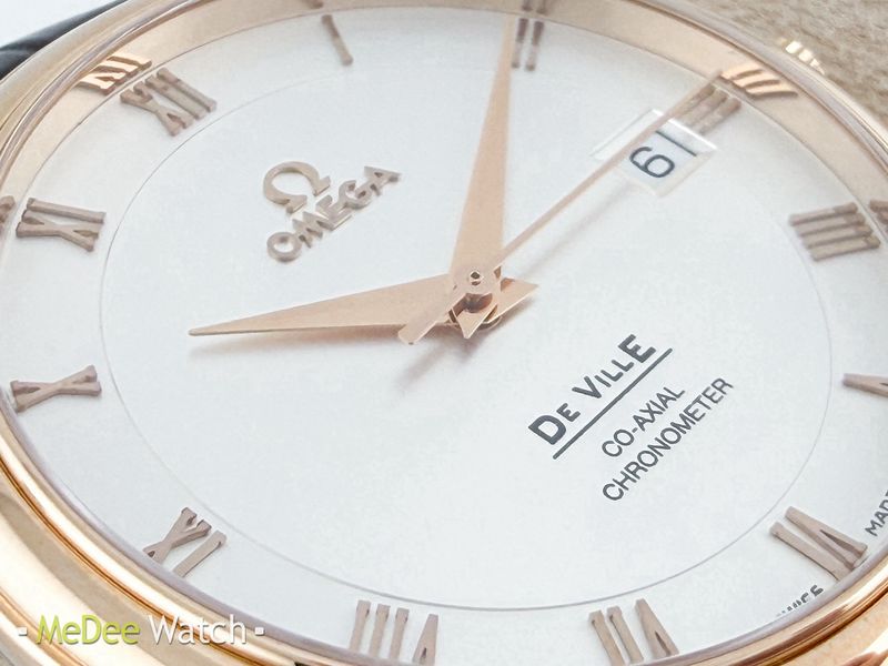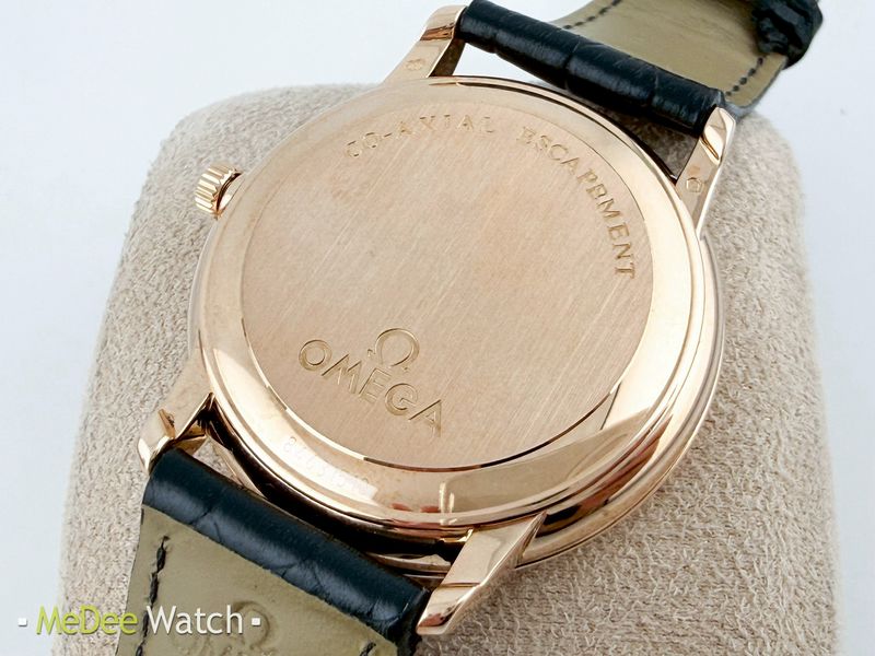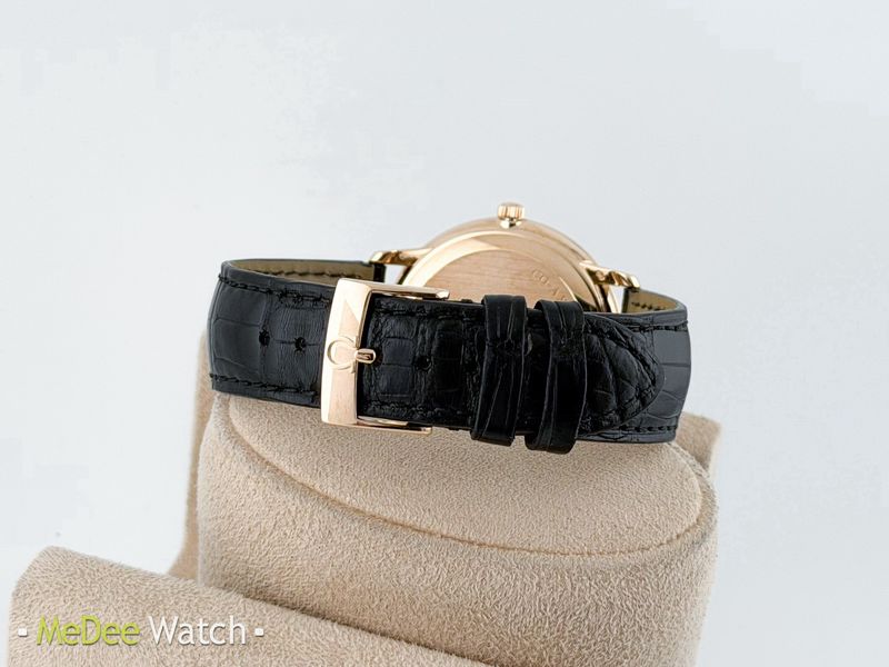 นิยามของความเรียบหรูที่เหนือกาลเวลา เรือนนี้มาในตัวเรือนขนาด 36.5 ทำจากทองคำ 18K Red Gold (ทอง Pink Gold เอกลักษณ์พิเศษของโอเมก้า) จับคู่มากับหน้าปัดสีเงินสะอาดตา ตัดกับหลักชั่วโมงแบบโรมัน ให้ลุคผู้ดีอย่างแท้จริง หัวใจที่ขับเคลื่อนนาฬิการุ่นนี้คือกลไก Co-Axial calibre 2500 มาตรฐานระดับ Chronometer ได้สายหนังแท้เดิมของแบรนด์ บัคเคิ้ลวัสดุทองคำ 18K เช่นกัน มาพร้อมกล่องใบครบ ออกช้อปสูงถีง 4xx,xxx เลยครับ