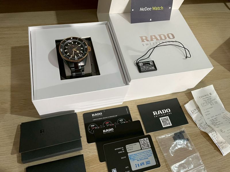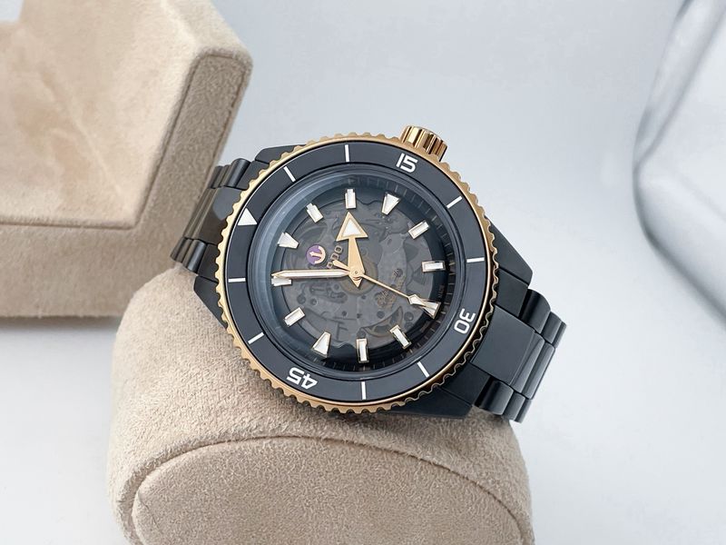 รุ่นฮิต ชนช้อป ตัวเรือนผลิตจากวัสดุเซรามิค มาในขนาด 43 ขอบเซรามิคดำหมุนได้ ดีเทลสีทองหรูหรา หน้าปัดดีไซน์แบบ Skeleton เครื่องออโต้หลังเปลือย สายเซรามิคดำ บานพับไทเทเนียม ป้ายสูงกว่า 15x,xxx ใครหาอยู่ ประหยัดไปเกินครึ่ง กล่องใบไทยครบๆ ปี 22 พร้อมใบเสร็จครับ