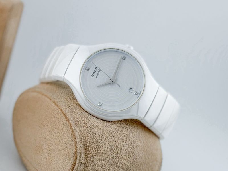 รุ่นดิสคอน ไซส์ใหญ่ หายากแล้ว เพิ่มความหรูหราด้วยหลักชั่วฌมงฝังเพชร ตัวเรือนทำจากวัสดุ High-Tech ทั้งเรือนและสาย กันรอยขีดข่วนได้อย่างดี น้ำหนักเบา ขนาด 40 หน้าปัดสีขาว Circle Texture มีช่องวันที่ กลไกเครื่อง Swiss Quartz เดินดี ดูแลง่าย มาพร้อมกล่องใบครับ