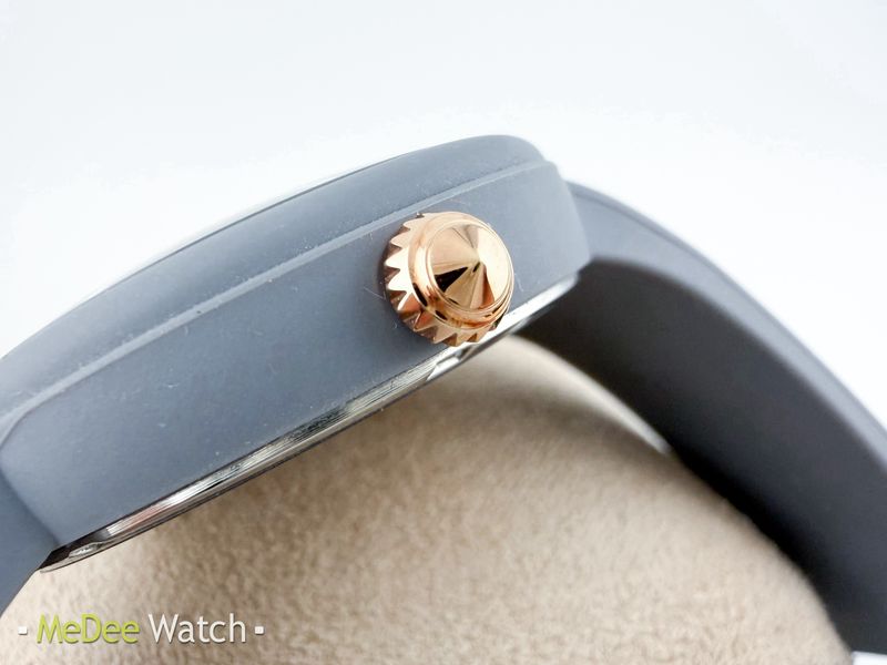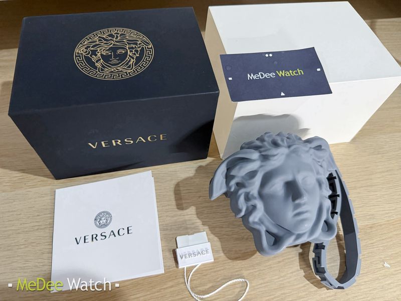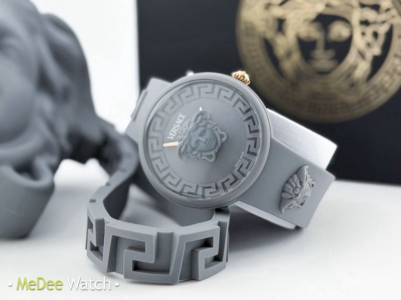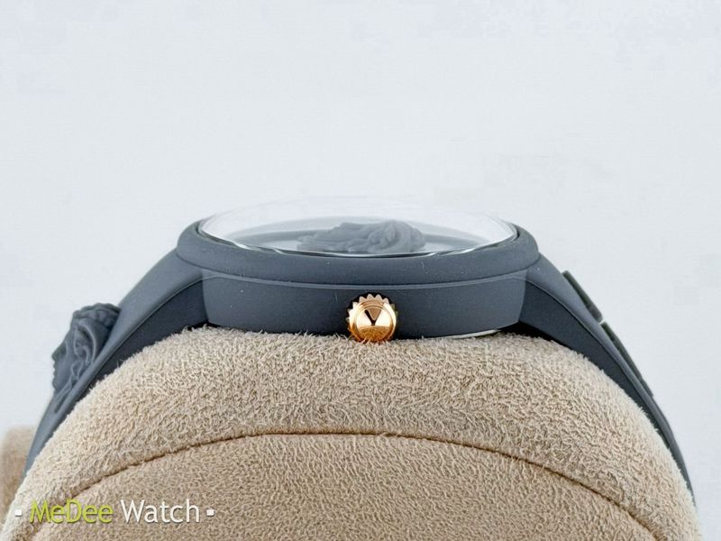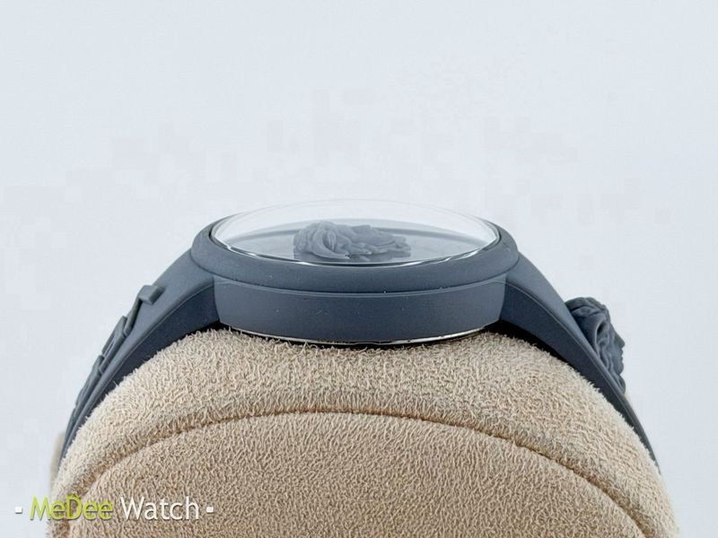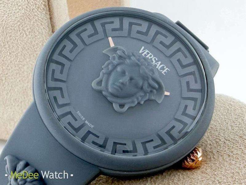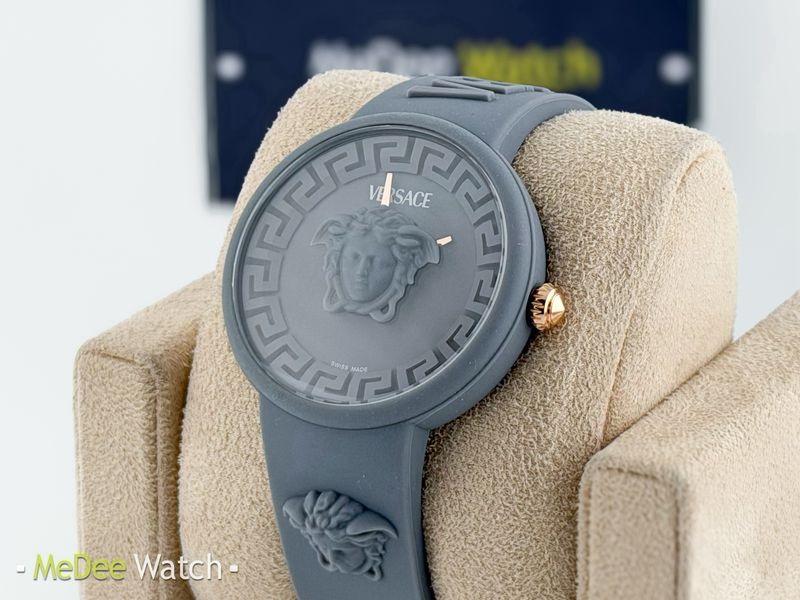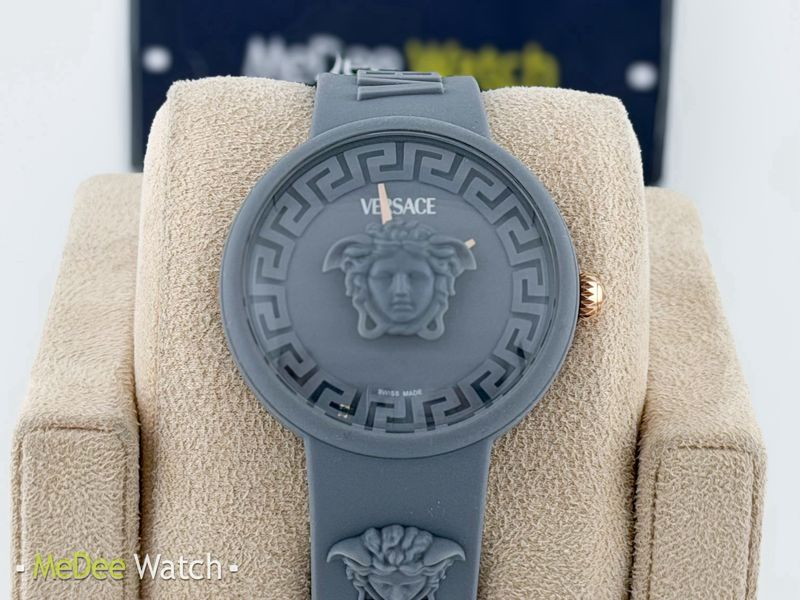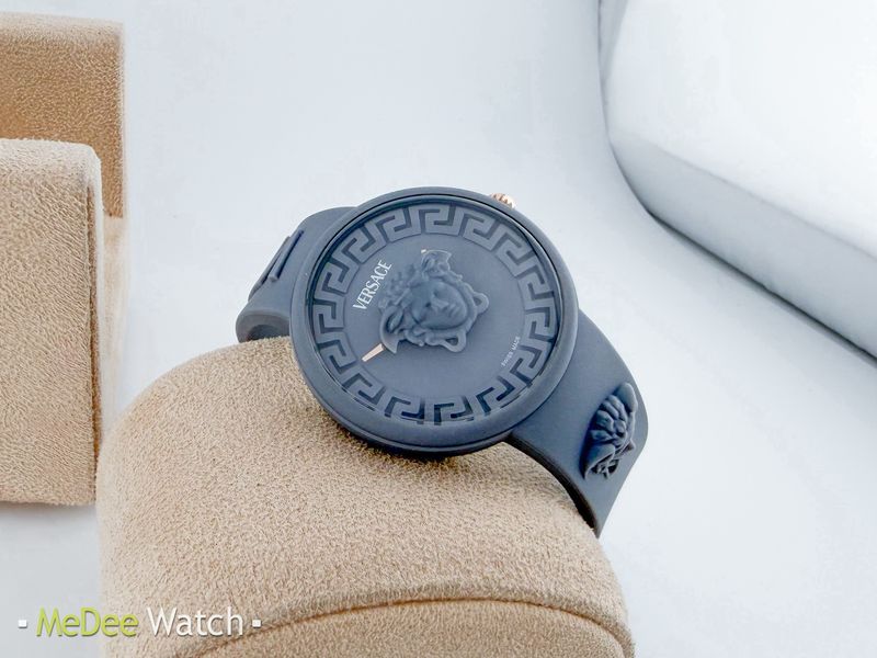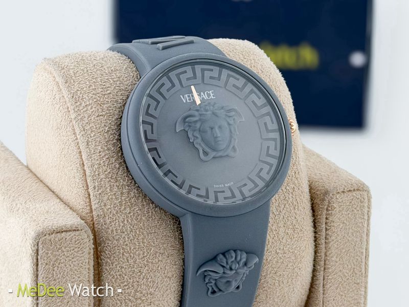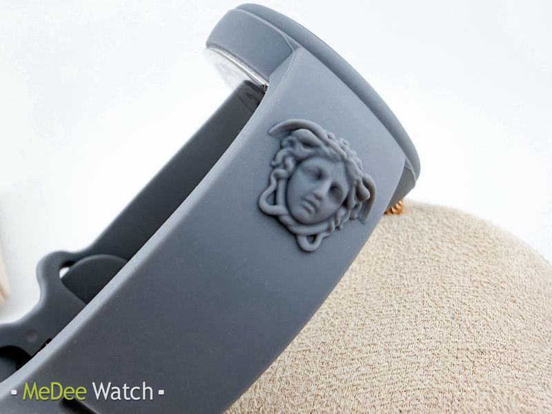 สภาพใหม่กริ๊บ ไม่ต่างจากของใหม่ ตัวเรือนขนาด 39 วัสดุซิลิโคนเกรดพรีเมี่ยม คุณภาพสูง สัมผัสดีมาก นุ่มสบาย แต่ทนทาน สีเทาเข้ม Matt Finish ดีไซน์กระจก Sapphire ทรงโดมเพิ่มมิติได้อย่างลงตัว ดีเทลสุด ตามสไตล์ High-Fashion มาพร้อมกล่องใบครบๆ และเคสหัวเมดูซ่าที่สวยโดดเด่นไม่แพ้กัน ป้ายสูงถึง 4x,xxx เลยครับ