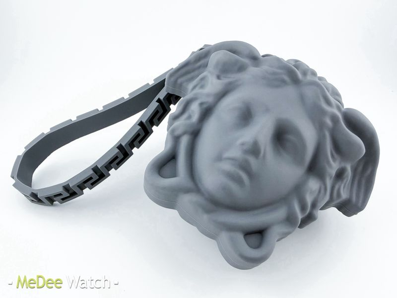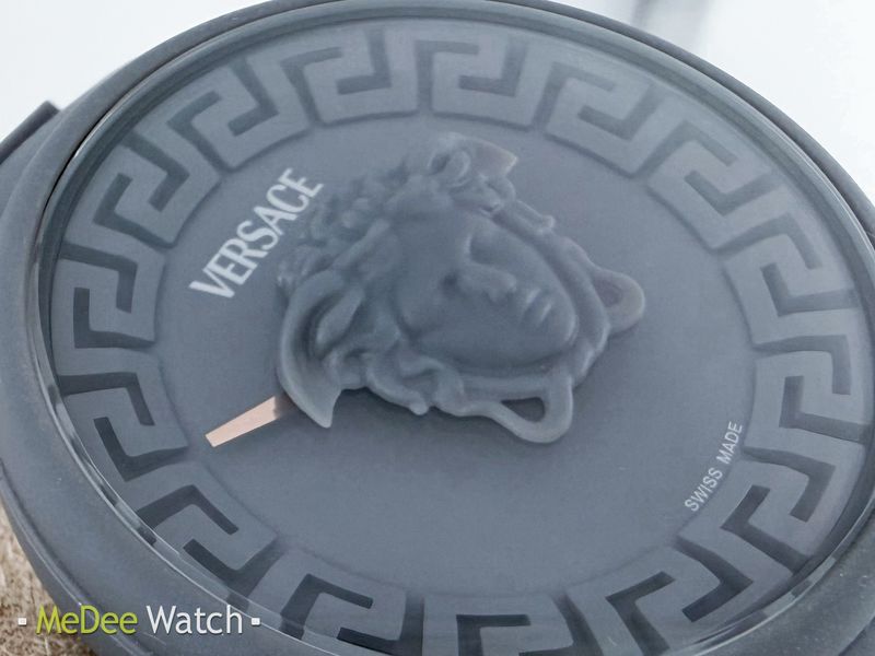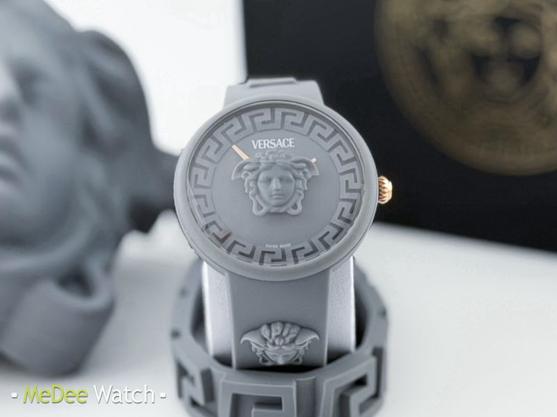 สัมผัส Icon ระดับโลกบนข้อมือคุณ โดดเด้นด้วย Meduza หัวเมดูซ่าสีเทาแบบ 3D ที่ลอยเด่นอยู่กลางหน้าปัด รายล้อมด้วยขอบตัวเรือนลาย Greca (ลายกรีกโบราณ) ที่เป็นเอกลักษณ์ของ Versace สวยสะกดทุกสายตา